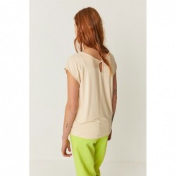 T-shirt met korte mouwen, ronde hals, rechte snit en een kleine decoratieve opening aan de achterkant.