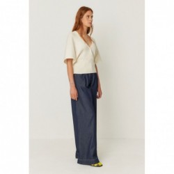 Kort T-shirt met kimonomouwen, V-hals en getailleerde taille, gemaakt van biologisch katoen.