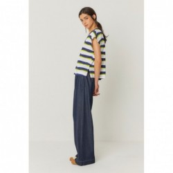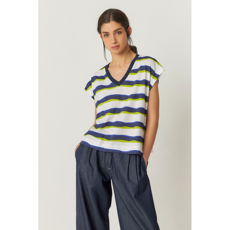 Losvallend mouwloos T-shirt met een diepe V-hals en verlaagde schouders.