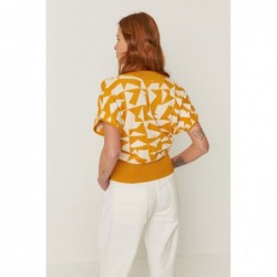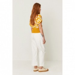 T-shirt met korte mouwen en V-hals, gemaakt van biologisch katoenen jersey. Geribbelde boorden bij de hals en taille.