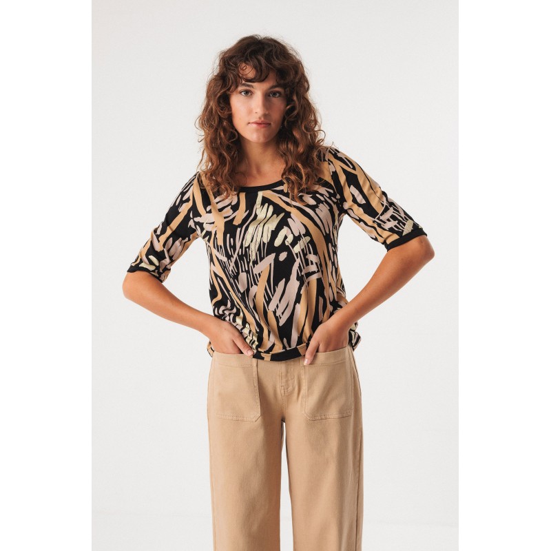 T-shirt met boothals en aansluitende pasvorm, met geribbelde boorden aan de halslijn en mouwen.