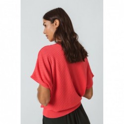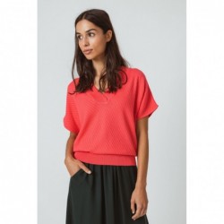 T-shirt met V-hals en korte mouwen, met geribbelde boorden aan de hals en zoom. Biologisch katoen.