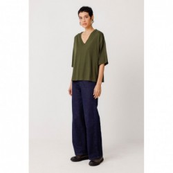 Losvallend T-shirt met V-hals en korte mouwen, voor een comfortabele en casual look.