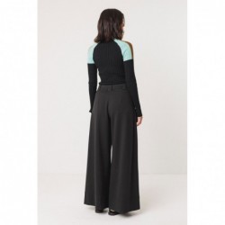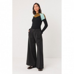 T-shirt met lange mouwen, fijne ribbreisel, hoge hals en contrasterende kleurvlakken.