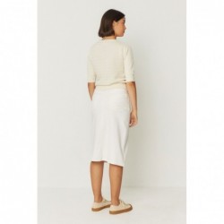 Midi-kokerrok met split aan de voorkant, gulp met knoopjes en opgestikte achterzak. Gemaakt in Spanje.
