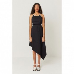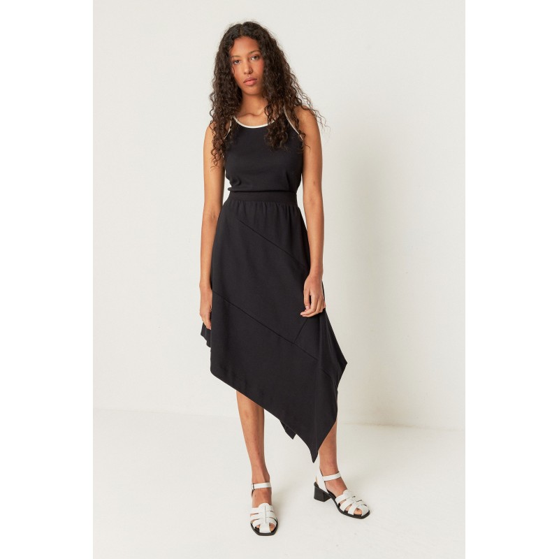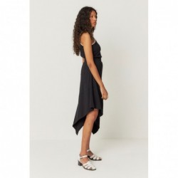 Knielange, uitlopende rok met geribbelde tailleband en asymmetrische snit.