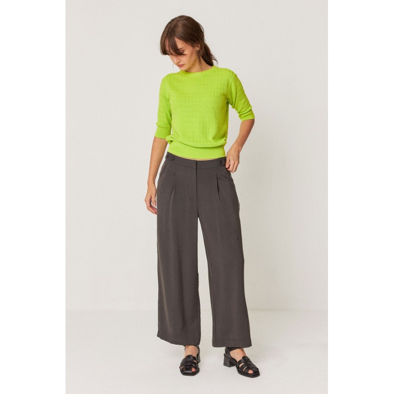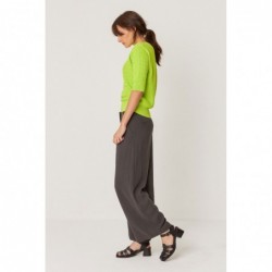 Enkellange broek met zakken opzij en ritssluiting aan de voorkant.