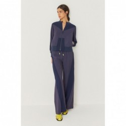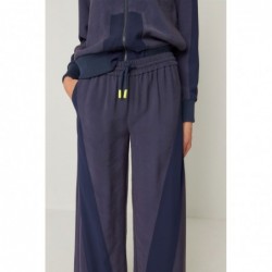Wijde joggingbroek met elastische tailleband. Schuine zakken aan de zijkanten.