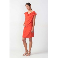 Rechte Lyocell jurk met boothals en verborgen ritssluiting in de zijnaad.