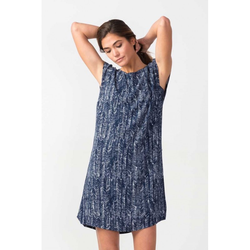 Mini-jurk met onze exclusieve "summer denim" print, met de hand getekend.