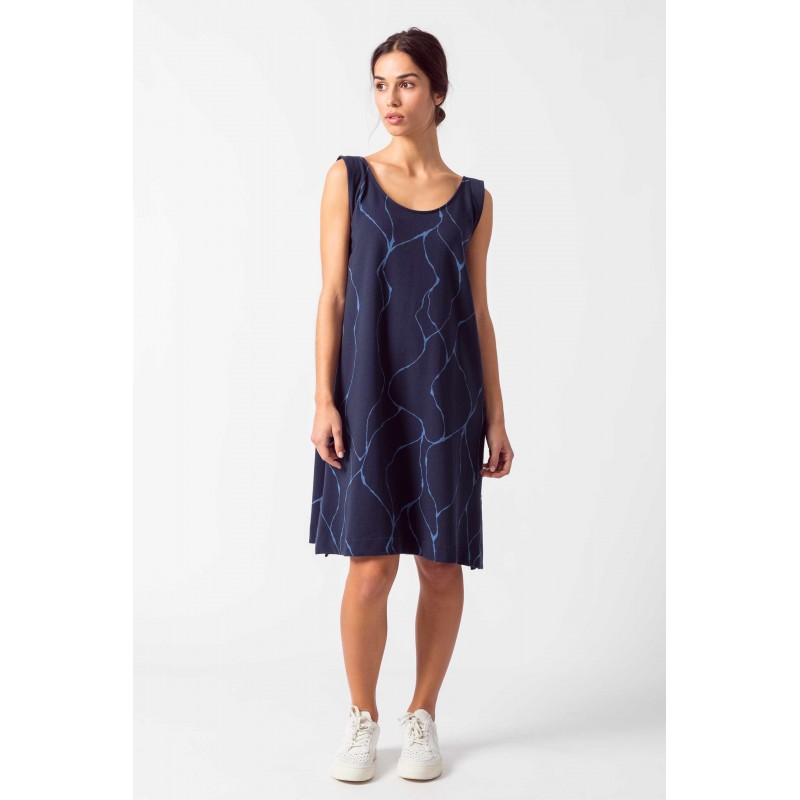 Deze mouwloze jurk is gemaakt in Portugal van gerecycled katoen en gerecycled polyester uit Spanje. Hij is comfortabel en blijft droog.