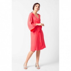 Deze roze jurk met driekwart uitlopende mouwen fleurt uw zomerse evenementen op.