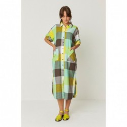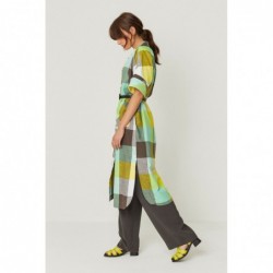 Casual overhemdjurk met verlaagde schouders. Met een klassieke kraag, opgestikte zakken aan de voorkant, een knoopsluiting en coupenaden op de rug. De korte mouwen zijn gevoerd, zodat de decoratieve stof zichtbaar is wanneer de mouwen worden opgerold.