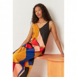 Mouwloze, uitlopende midi-jurk met V-hals, gemaakt van stretchkatoen.