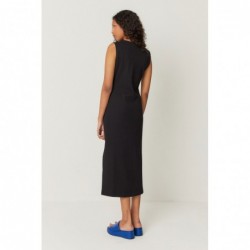 Mouwloze, rechte jurk met ronde halslijn, contrasterende kleurvlakken en zijsplitten.