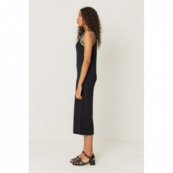 Mouwloze midi-jurk van biologisch katoenen jersey. Hij heeft een diepe V-hals met een veelkleurige geribbelde boord.