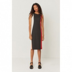 Mouwloze midi-jurk met een rechte snit en ronde hals.