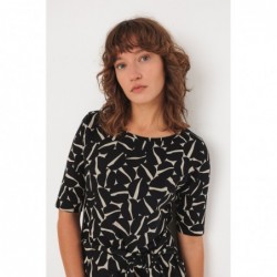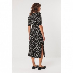 Aansluitende midi-jurk met een boothals, korte mouwen en een geknoopt detail aan de voorkant. Hij is gemakkelijk aan te trekken en heeft splitten aan de onderkant voor extra comfort.
