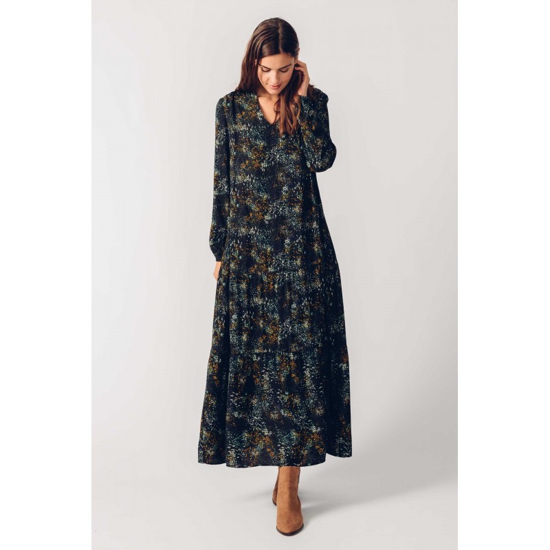 Maxi-jurk met bloemenprint. Trek de aandacht in deze lange, soepele jurk met een print geïnspireerd op een bloeiende boom.