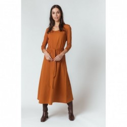 Lange jurk met ronde hals, uitlopende rok en driekwartmouwen. Gemaakt van stretchkatoen en verstelbaar dankzij een afneembare riem.