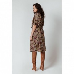 Deze comfortabele midi-jurk, gemaakt van stretchkatoen, heeft een Zero Waste-ontwerp dat stofverspilling minimaliseert. Hij is verstelbaar met een riem en versierd met een camouflageprint.