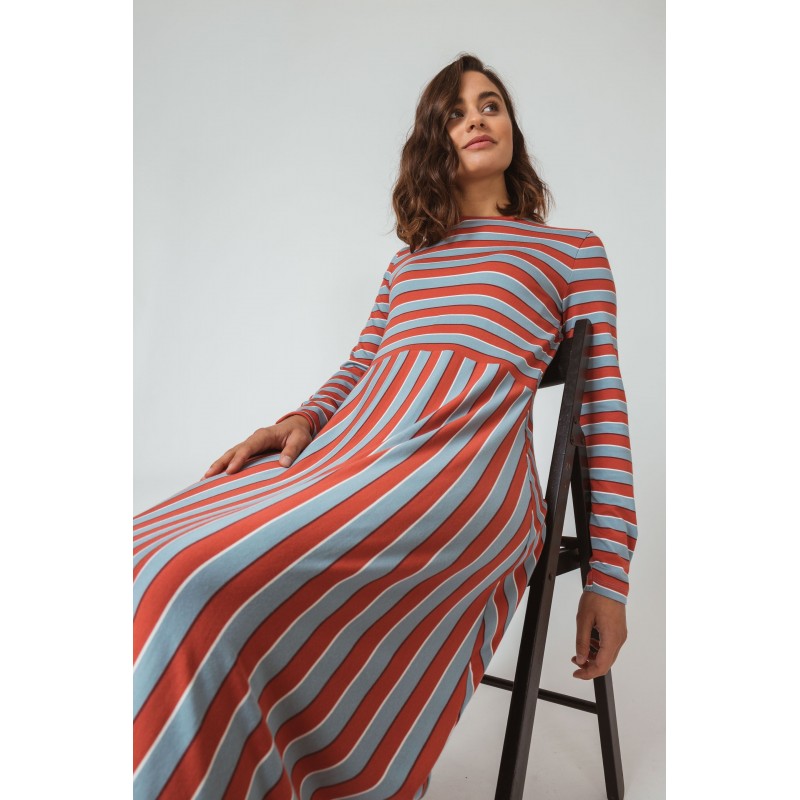 Uitlopende midi-jurk van stretch TENCEL Modal, met ronde hals en lange mouwen.