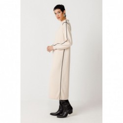 Midi-jurk met lange mouwen, een opstaande kraag en contrasterende biezen. Gemaakt van GOTS-gecertificeerd biologisch katoen.