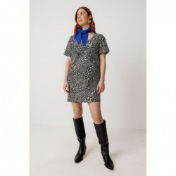 Rechte jurk tot boven de knie, korte mouwen, ronde hals en een comfortabele pasvorm. Bloemenprint.