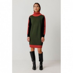 Gebreide jurk met kleurblokken, een rechte snit, tot boven de knie, met een opstaande kraag, lange mouwen en een comfortabele pasvorm. Gemaakt van middelzwaar, GOTS-gecertificeerd biologisch katoen.