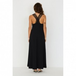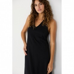 Mouwloze midi-jurk met een uitlopende silhouet, V-hals en bandjes op de rug. Gemaakt van GOTS-gecertificeerd biologisch katoen.
