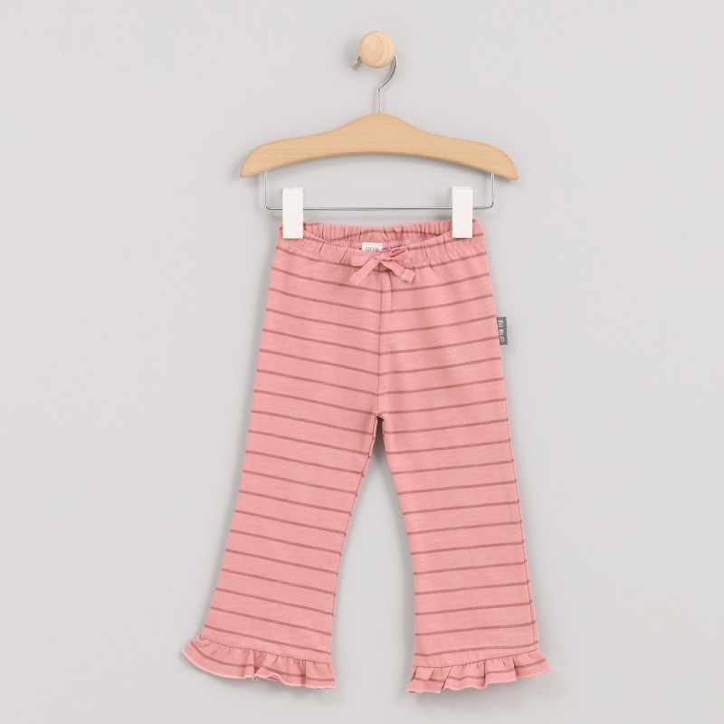 Gestreepte broek uit de Vintage Bloom-collectie met een flared model en ruches bij de enkels, die veel bewegingsvrijheid en een unieke stijl biedt. Het comfortabele, elastische ontwerp zorgt voor volledige bewegingsvrijheid, terwijl de details aan de zoom een speelse en subtiele touch toevoegen, perfect voor het creëren van outfits met persoonlijkheid.