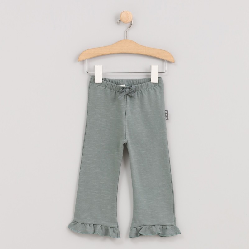 Deze broek uit de Zoo Green collectie heeft een uitlopende snit en ruches bij de enkels, wat zorgt voor een zwierige en charmante stijl. Gemaakt van een zachte en comfortabele stof, is de broek perfect voor dagelijks gebruik en voegt een leuke en originele touch toe aan elke outfit.