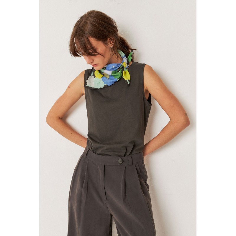 Bedrukte sjaal. Afmetingen: 57 x 57 cm.