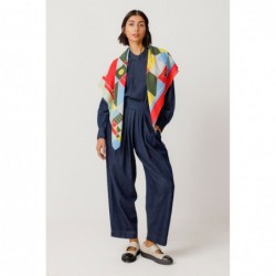 Vierkante sjaal met veelkleurige geometrische print. 110 x 110 cm. GOTS-gecertificeerd biologisch katoen.