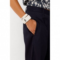 Brede, geplooide leren armband met drukknoopsluiting. Afmetingen: 21 x 3 cm.