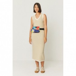 Heuptasje van geplooide stof. Cilindrisch van vorm, met verborgen ritssluiting en verstelbare nylon band. Afmetingen: 25,4 x 5,2 cm.