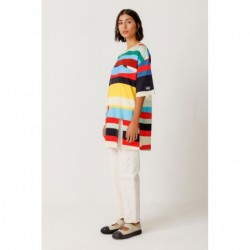Lang, losvallend T-shirt met ronde hals, 3/4 mouwen en een opening aan de voorkant, in een relaxte en trendy stijl. Samenwerking met Grems.