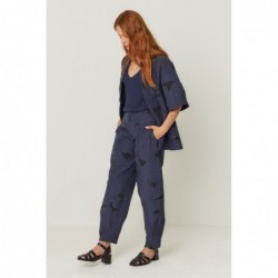 Jaqueta folgada e envolvente, com corte abaixo do joelho e mangas ¾. Possui bolsos aplicados e acabamento em viés contrastante que esconde as costuras.