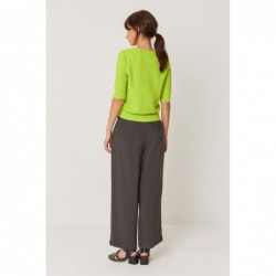 Calças compridas até o tornozelo com bolsos laterais e fecho de zíper frontal.