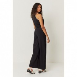 Calças de corte reto, estilo esportivo, com cós canelado.