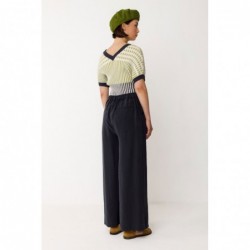 Pantalón palazzo fluido com cintura elástica, modelo Klodin