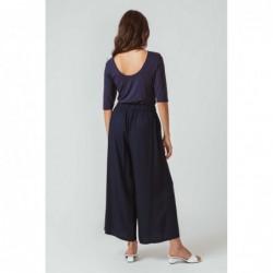 Calças palazzo com bolsos frontais e tecido crepe fluido. Cinto para amarrar.