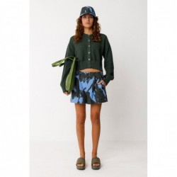 Calções de cintura alta com bolsos frontais e fecho de correr frontal. Comprimento de 34 cm no tamanho 38.