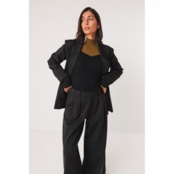 Camiseta de manga comprida em malha canelada fina com gola alta e apliques de cores contrastantes.