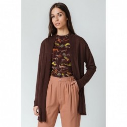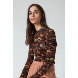 Esta camiseta de manga comprida e gola redonda em tecido elástico é decorada com a estampa Yarn sobre um fundo marrom.