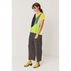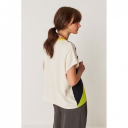 Camiseta larga e larga, confeccionada em malha jacquard de algodão orgânico. Cavas profundas e acabamento canelado na gola.