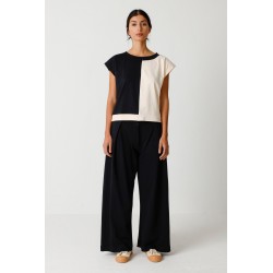 Camiseta de manga curta e gola redonda com detalhes em malha canelada na gola e nas laterais.