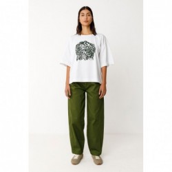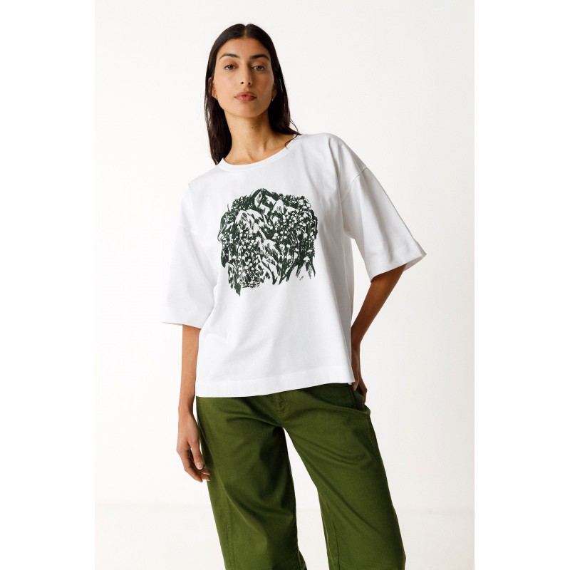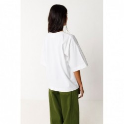 Camiseta oversized de manga curta e gola redonda, confeccionada em algodão orgânico com certificação GOTS.
