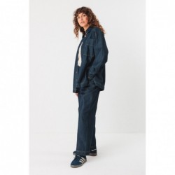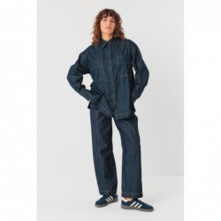 Camisa jeans fina de algodão orgânico com certificação GOTS. Fecho frontal por botões e bainha reta na cintura com fendas laterais.