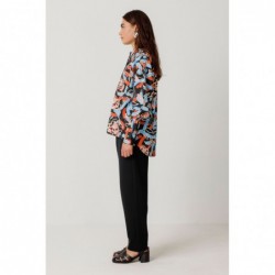 Camisa de corte amplo, mais comprida atrás, com gola clássica, mangas compridas com punhos abotoados e fechamento frontal por botões, complementada por bolsos aplicados no peito. Combina um caimento confortável e uma estampa floral exclusiva com um design altamente prático: uma peça versátil e essencial no guarda-roupa.